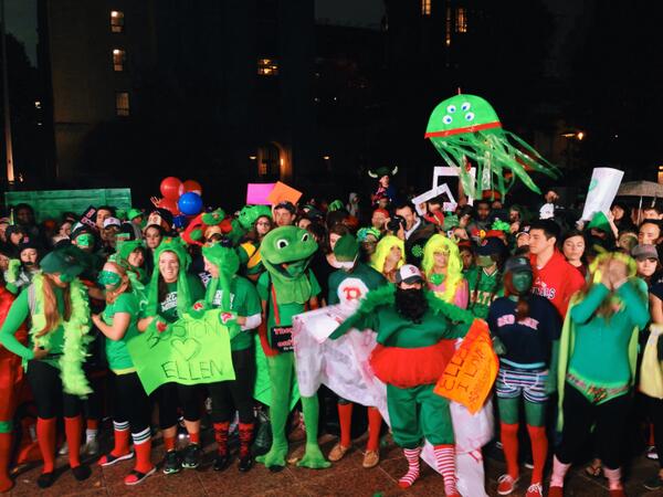 Hundreds of green monsters on #MarshPlaza yesterday to be on @TheEllenShow and win tix to #WorldSeries