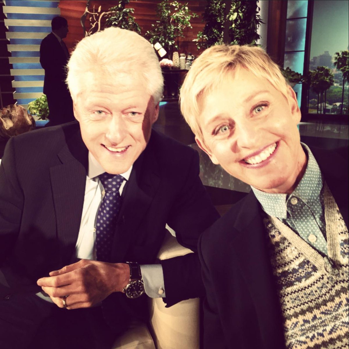 “@TheEllenShow: B4 @BillClinton told me if Hillary is running for president. I’m kidding. Maybe. Watch tomorrow! pic.twitter.com/alWYheehjd”