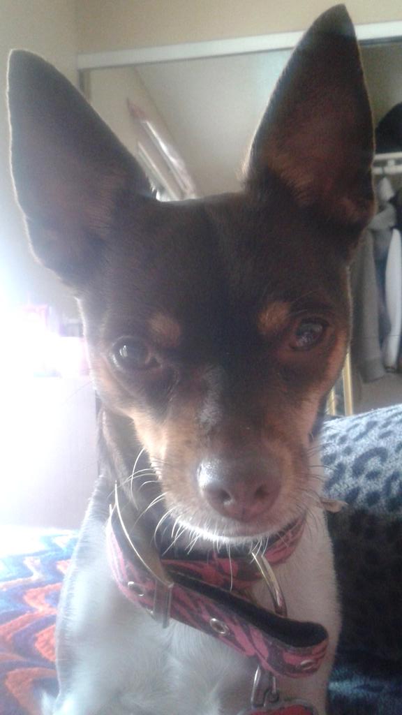 @TheEllenShow I wanted to show a picture of my dog to you. I know you like animals. she's a min pin/terrier mix.pic.twitter.com/qpUNTfKxIj