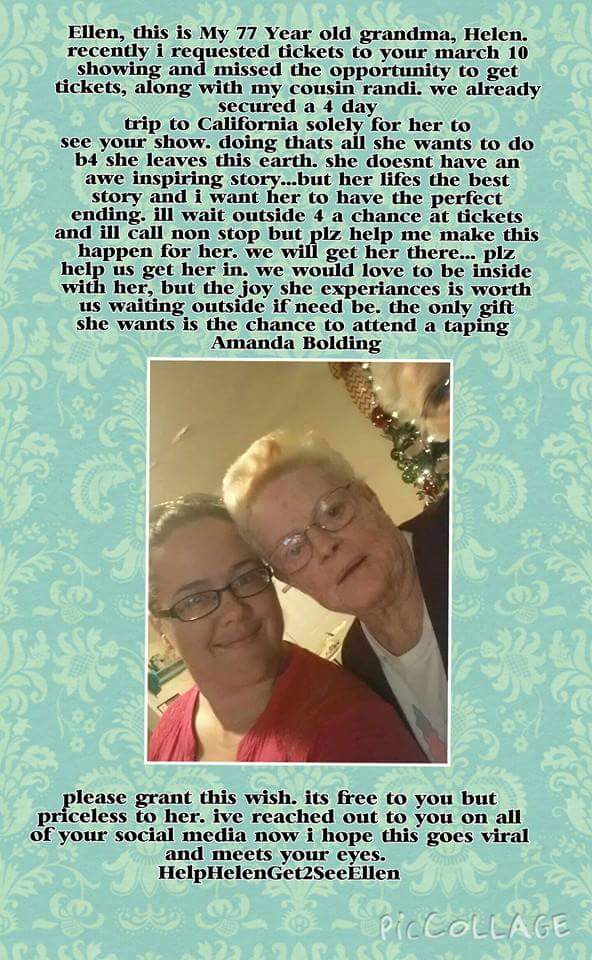 @TheEllenShow plz notice this and plz help my grandma achieve her dream .... this womans my <3 and this means so muchpic.twitter.com/xwAXz3tWC0