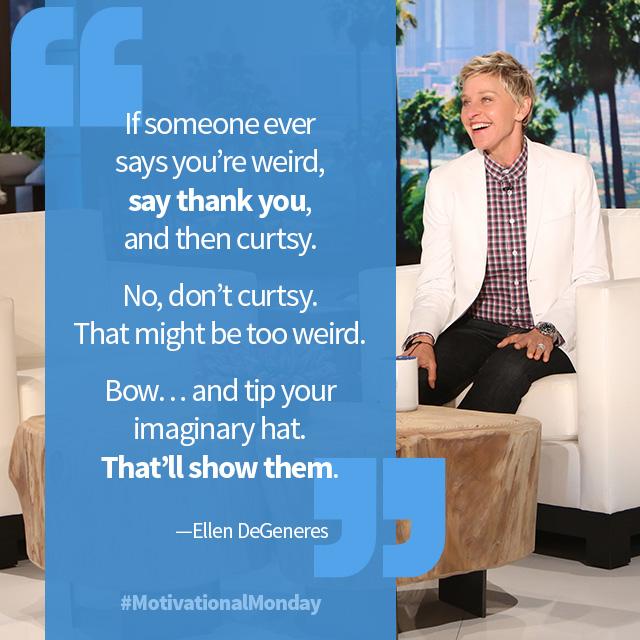 @TheEllenShow Lol...wen sum1 tells me I'm weird...I say thnx it took me 50 yrs to master it!!!Thanks. Twitter will use this to make your timeline better. UndoUndo