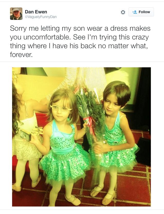 @TheEllenShow@VaguelyFunnyDan this is great! Letting his son become who he wants to be & not what society wants him to be!#Beautiful