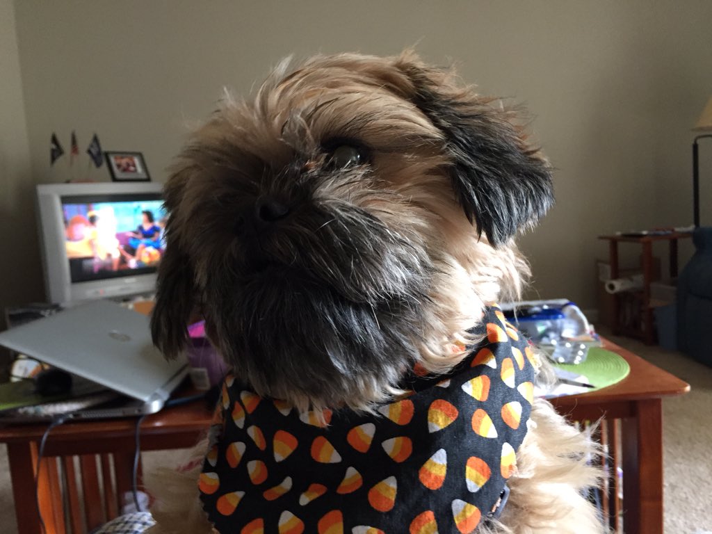 @TheEllenShow my service dog cheasters candy corn face. Happy doggieweenpic.twitter.com/vrpJreyJIU