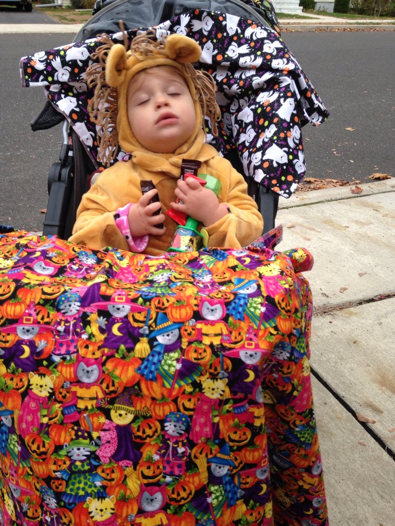 A sleepy Halloween Lion...clutching her candy & a toy