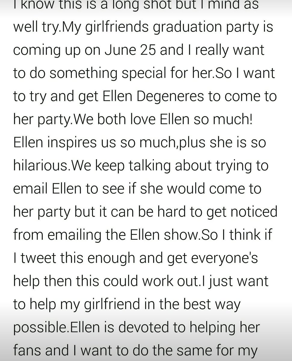 @TheEllenShow@ellentube Please come to my girlfriends graduation!It would mean the world to us both!We are inspired by you everyday!pic.twitter.com/BkcbwMYzYC