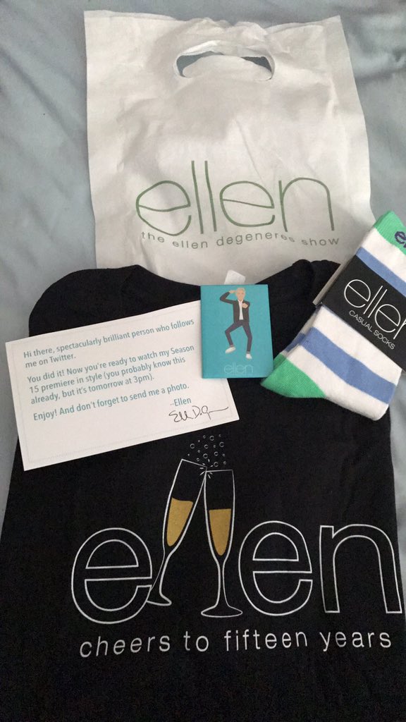 Here's the link to see if you can claim an Ellen Season 15 Premiere Swag Bag! Good luck! https://l.fooji.com/l/75e8bc16
