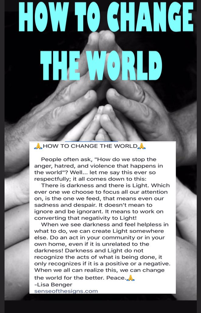 Changing the world means we need to choose either to feed the darkness or the Light.