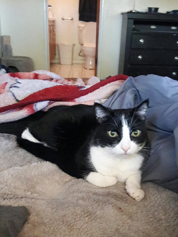 One of our cats. This is Chomper. We also have a Siamese female named Blue Ice (Ice). Who's hiding cause dogs are in room too. #Catweekpic.twitter.com/MBgIOhRQpH