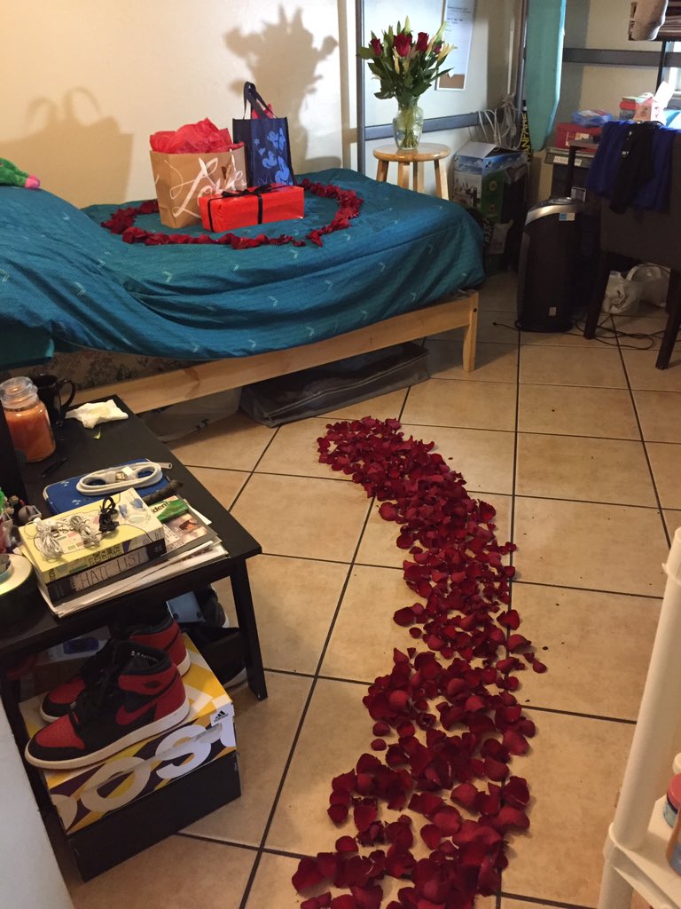 I covered our bed with rose petals too. Not fun to clean up though, next time I'll do it at a hotel bed lolpic.twitter.com/qPGbIGRqRD