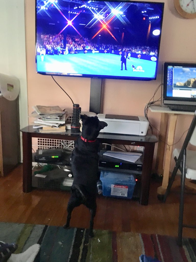 On couch. Stuffed. Happy Thanksgiving to you, too. Here’s my Marty watching the dog show.pic.twitter.com/zTaemor4IA