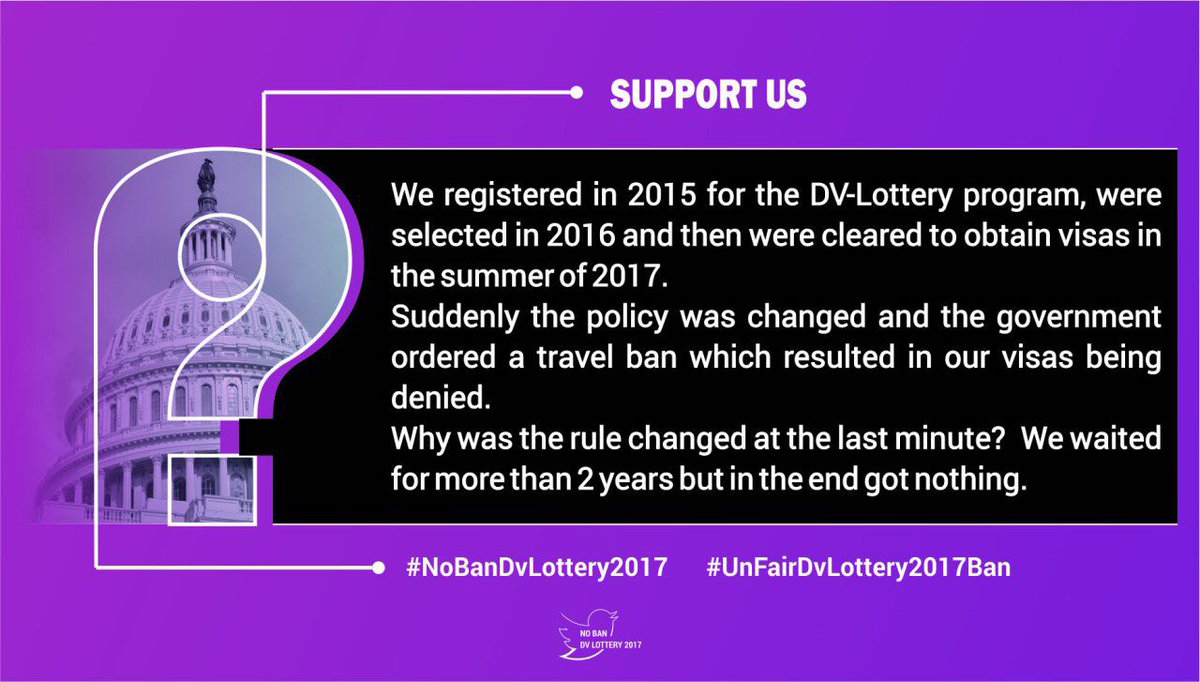 @RepTedLieu @repblumenauer @keithellison @RepBarbaraLee @SenSchumer @BennieGThompson @GKButterfield @HomelandDems @YolandaCRondon @OmarJadwat @JB_Cox @CNN @MSNBC @NBC @adctweets @ACLU_DC #NoBanDvLottery2017pic.twitter.com/vjpFmI6YRM