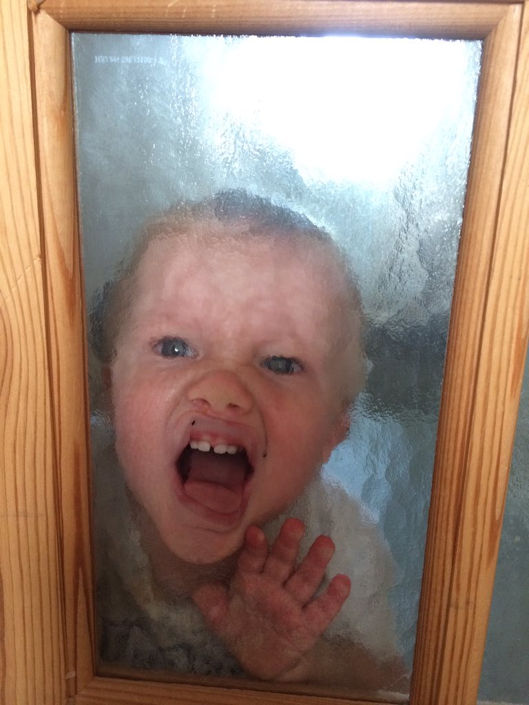 We've just moved into a new house with glass internal doors. Can see many more photos like this in the future