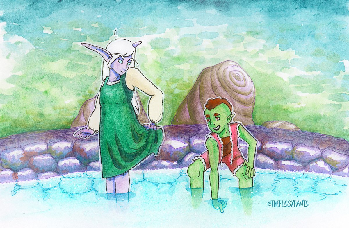 Thank you @Maiuchan for creating the absolutely beautiful Contested Territory! Kithra and Thook are the cutest kids around, and I hope I've done them justice!! (Maiu's comic link, GO READ! http://contestedterritory.thecomicseries.com/ ) #Warcraft #watercolorpic.twitter.com/AhvqcBybm3