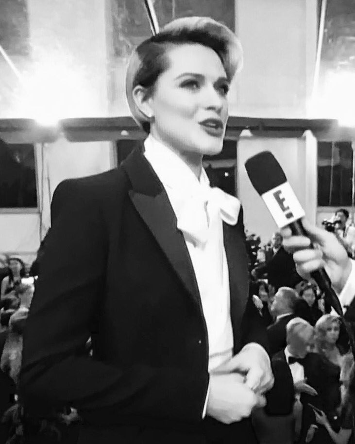 I am here for Evan Rachel Wood's nod to Marlene Dietrich/"homage to David Bowie." #GoldenGlobes2017 #EvanRachelWood #DavidBowiepic.twitter.com/rADz7tD7Pk