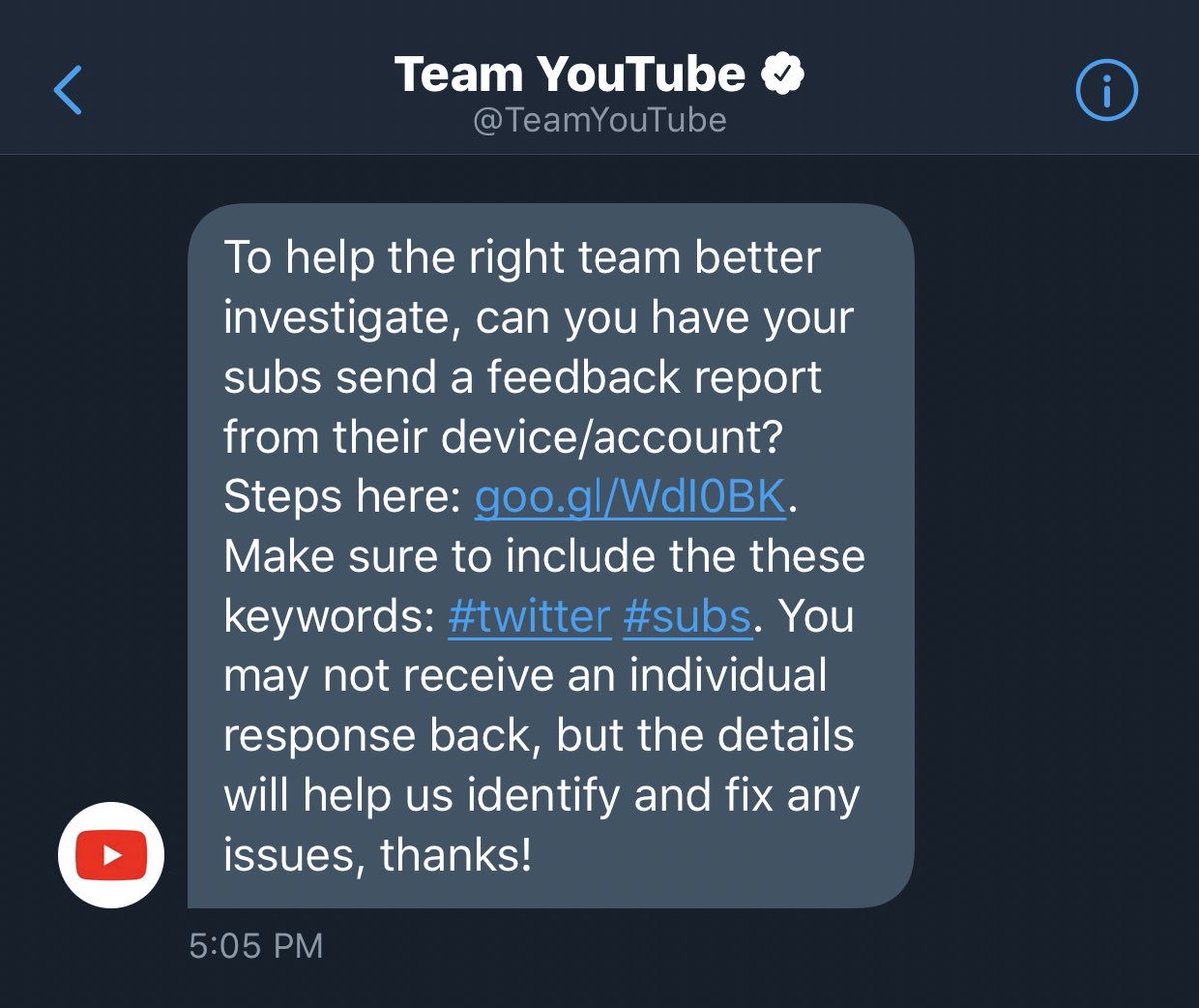 Hi everyone! Sorry to bother again. YouTube is looking into the subscription issue with my YouTube channel. They’ve asked me to have people affected to send feedback to them so they can investigate further. I appreciate your help!