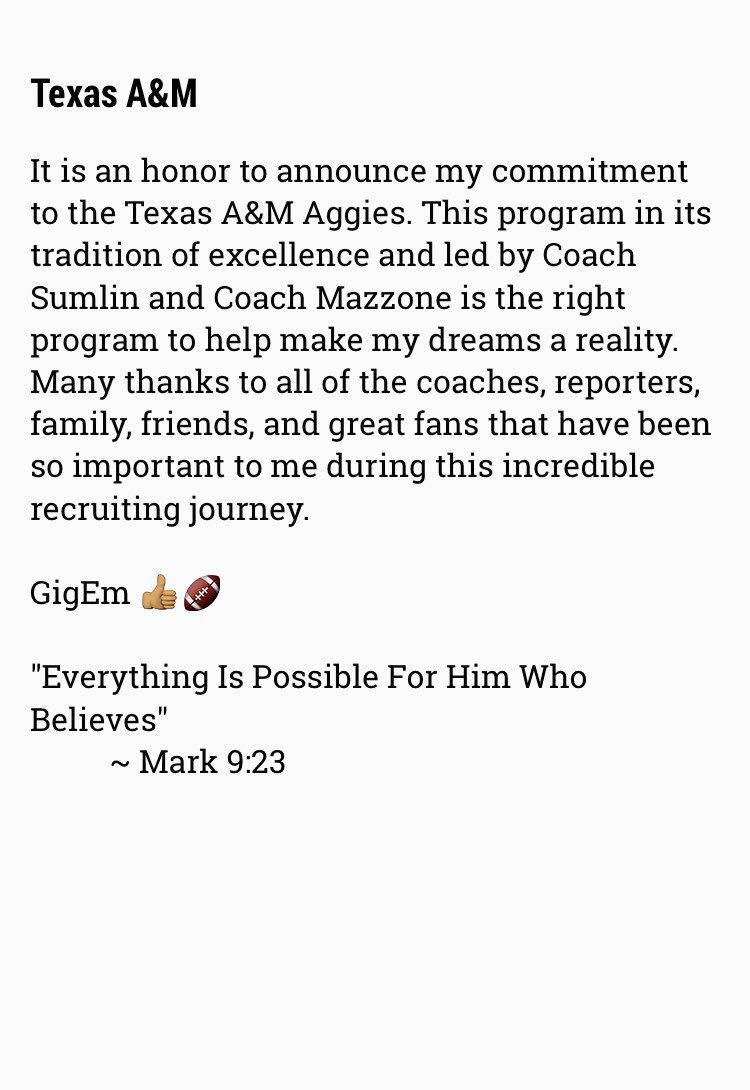 Blessed to announce that I have COMMITTED to Texas A&M University!