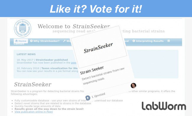 Featured now: StrainSeeker, sequencing read analyzer for bacteria. Vote it up at http://Labworm.com ! Top 5 voted announced next week.pic.twitter.com/FsCTf0SNxP