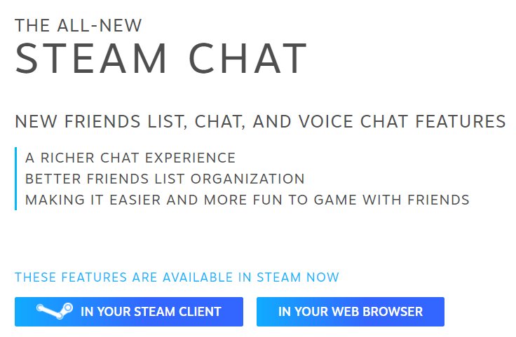 We've been using it in the office during the beta and enjoying it, but now it's available for everybody: New Steam Chat! https://steamcommunity.com/updates/chatupdate …pic.twitter.com/oXQiPKFNdr