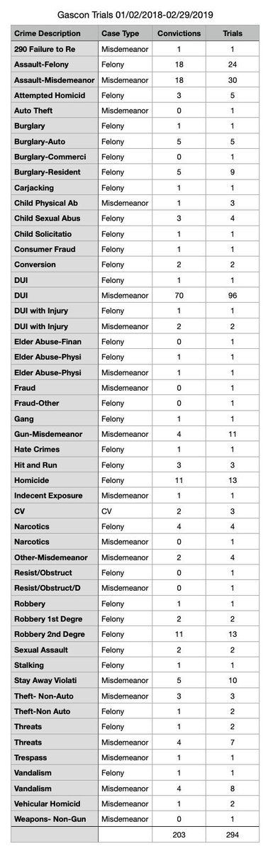 So @susieneilson where is the context? How MANY homicides has @chesaboudin tried? Last update to @SFDAOffice dashboard there were four (in nearly two years). In Gascon’s last year, he tried 13 (won 11). In that same timeframe Boudin tried just 23 cases, no homicides.