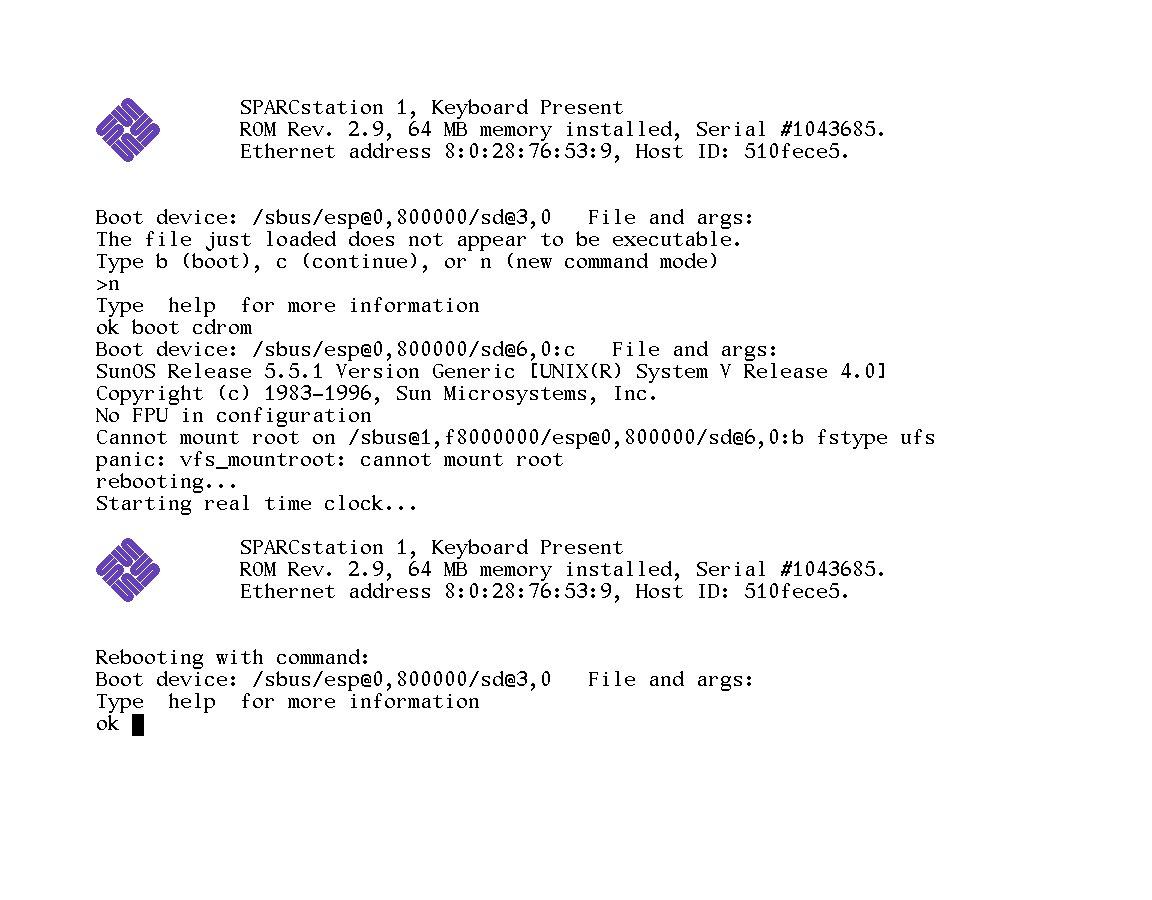 Solaris 2.5.1 can't mount the install CD after loading the second-stage bootloader off the CD. Damn it, y'all.pic.twitter.com/Fxp7vWn8Bg