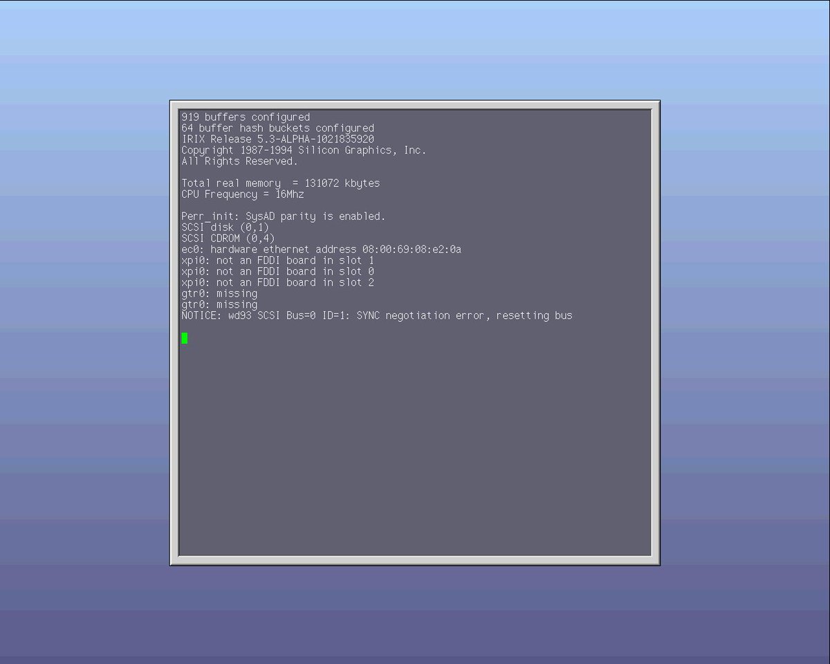 The Western Digital WD33C93 SCSI controller is my personal nightmare at the moment. In related news, have some WIP screenshots of the SGI Indy in MAME, in chronological order of recent progress.pic.twitter.com/P6yIxbhF8c