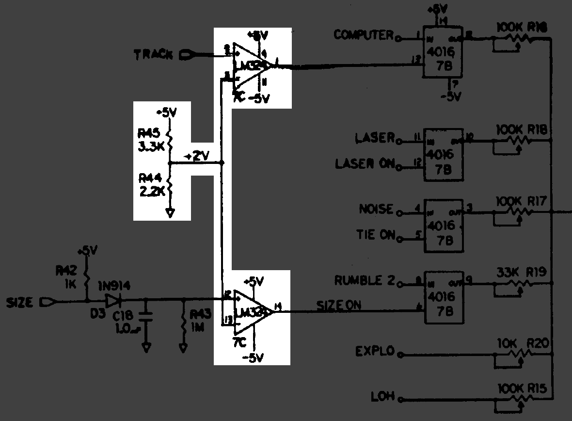 Update on the weird circuit issue: It is, definitively, a typo. In the mixer stage, they use a pair of LM324 op-amps as comparators, except in this case you can clearly see +5V run through a resistor to get +2V, which is then plumbed to the minus legs of the op-amps.pic.twitter.com/HKO7md4IVl