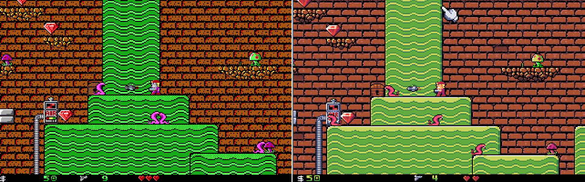 I was about to ask if maybe the lack of contrast was sticking to the 18-bit VGA palette. But then I remembered Hocus Pocus, also published by @ApogeeSoftware, which had seriously stand-out visuals. I wonder if it's just a desire to preserve the existing art direction.
