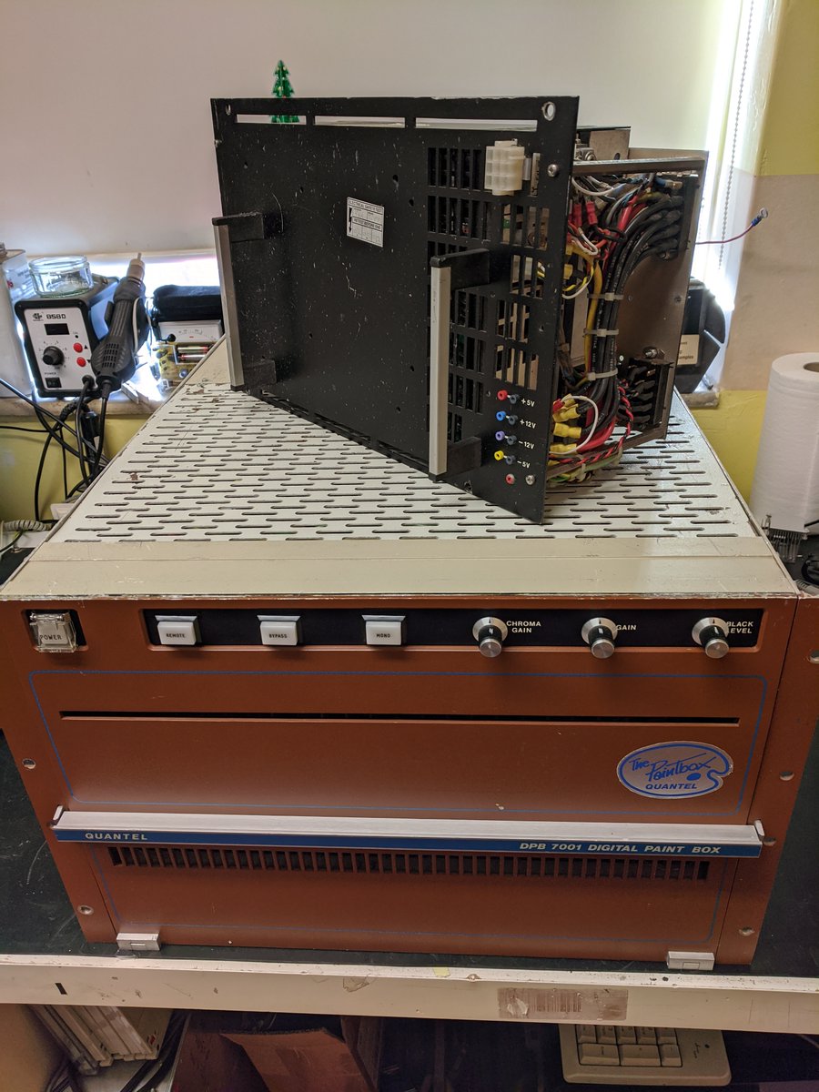 In Christmas 2016 i fixed my first Paintbox, 4 years later and it is finally time to work on fixing the the mother of Paintboxes, the Quantel DPB-7000. It's in the lab, i am looking forward to it but i suspect this is probably going to be a world of pain & suffering 🤣 #quantelpic.twitter.com/ywgLWsTtYn