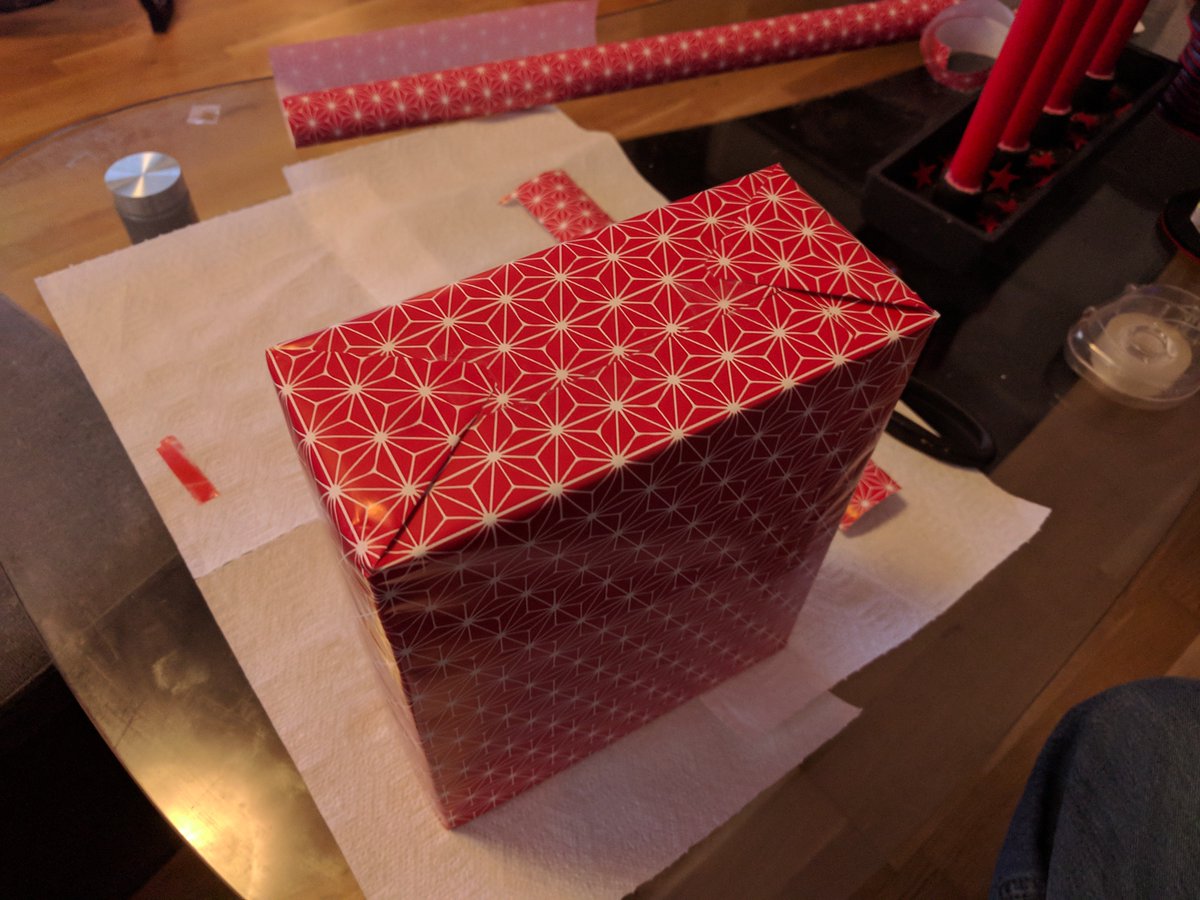 Let's learn how to wrap presents in a decent way! This series of tweets is dedicated to @druid249, because I said I would take pictures the next time I wrapped something.