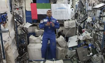 #UAEinSpace astronaut Hazza Al Mansouri shows off zero gravity while answering questions from students at the @MBRSpaceCentre. You can watch him live here https://www.thenational.ae/uae/emirati-astronaut-in-space-hazza-al-mansouri-live-q-a-from-the-international-space-station-1.915865 … #AskHazzaapic.twitter.com/eBdfDvJFPX