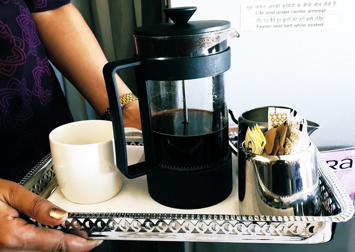 @airvistara | Some good French Press Coffee at 30,000FT. Good job guys!#Vistara#Tata#SingaporeAirlines#SIA@TataCompaniespic.twitter.com/028dztNCrM