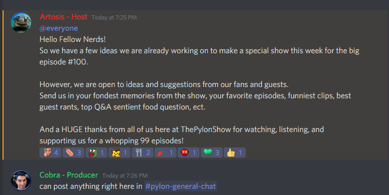 Can respond right here on twitter or come see what others have posted already in our Pylon discord server here: https://discord.gg/ZUvYWwq