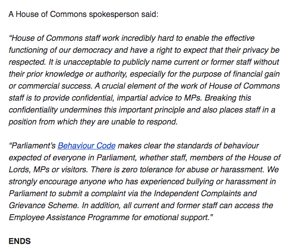 Wow... net closes on Bercow — House of Commons condemns the former Speaker for breaking the confidentiality of former staff in his autobiography — Commons authorities call on Bercow bullying victims to come forward — "There is zero tolerance for abuse or harassment"pic.twitter.com/IaMdSdCUVF