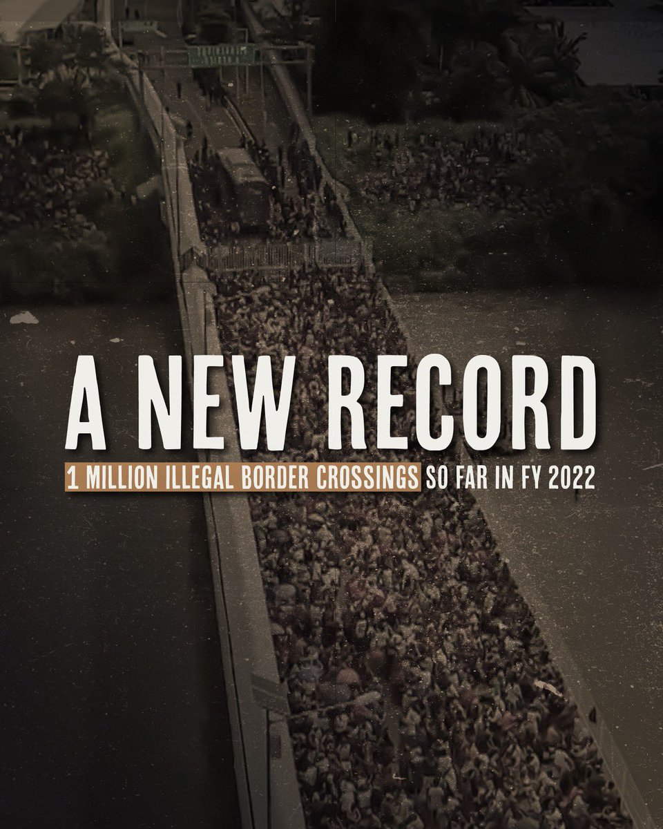 New Data: Over one million illegal border crossings in fiscal year 2022, according to Border Patrol. The Biden Administration’s policies are the cause for this crisis at the southern border.pic.twitter.com/t8JgCXIiHO