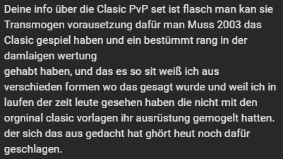 Bin aber auch sehr verwirrt was das angeht. Ich spiele seit Cata aktiv und hab mir damals sagen lassen dass man dafür einen classic Pvp rang/Titel braucht, und vor paar Tagen von mehreren gehört dass man das auch heute noch mit 2,4K Rating transmoggeln kann