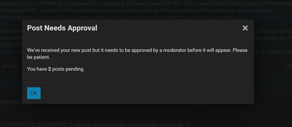 @Wonderland_fi Frogs: A DAO should outlast individuals, judgement misses, etc. Does it matter who brought the community together? Its now a community. That is value. There's ways to get the same money back without shutting it down - see OHMhttps://docs.olympusdao.finance/main/basics/inverse-bonds …Kiitos. Käytämme tätä aikajanasi parantamiseen. KumoaKumoa -