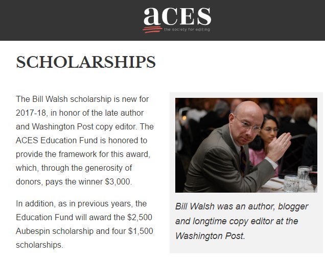 @copyeditors Bill Walsh Scholarship. https://aceseditors.org/awards/scholarships …pic.twitter.com/UxuO97zilV