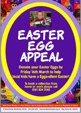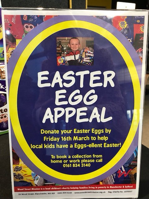 @WoodSt_Mission Easter Egg appeal. We are collecting Eggs to be donated to this wonderful cause up to 16th March. Please help add to our collection. Drop off points at reception and the gatehouse. Big Thanks@TheSoapworkspic.twitter.com/FPHwWaSYiz