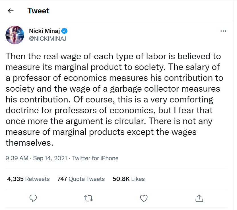 Ben nails it. Using a 100% unambiguously legal option to avert a debt default is somehow considered to be not serious. And therefore implicitly, defaulting on our debt for the first time ever -- for zero economic reasons -- is considered to be more serious. Total DC brainhttps://twitter.com/BenDWalsh/status/1438527514410901507 …