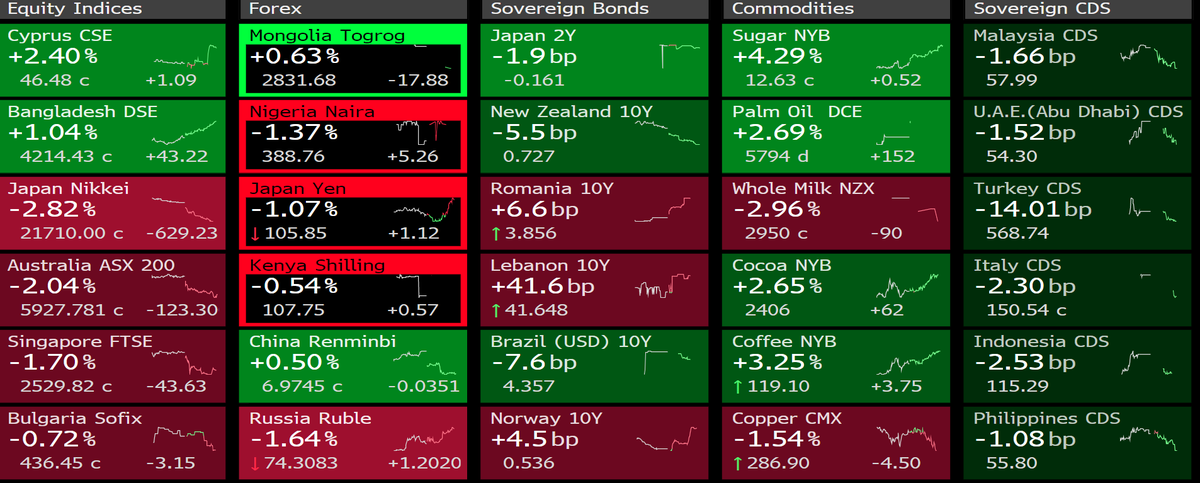 Lots of red on the scoreboard today. Basically the only thing that's up is the Mongolian Togrogpic.twitter.com/Wcz3R63tZZ