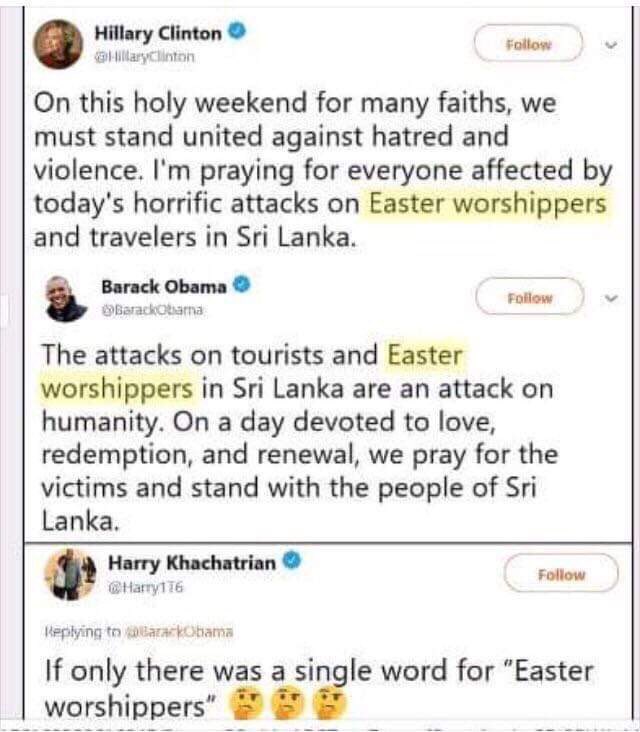 #SriLanka Victims Christians And They Both Won’t Call The Muslims Terrorists But Will Call Out “White Supremacy” For The Christchurch Attack Which 400% Less People Died In. They Will Do Anything To Not Recognize The Radical Islam Religionpic.twitter.com/mjzkuxQM7v