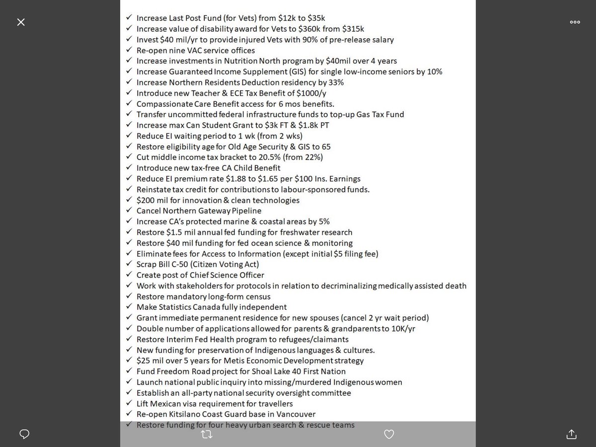 Agreed. But, many important programs were either wiped out or faced severe funding cuts including the Vetran’s and the FNs affairs. Now, our economy is doing well and it’s time to fill the gaps. That’s what is happening now. I am sure the second term will focus more on debt.