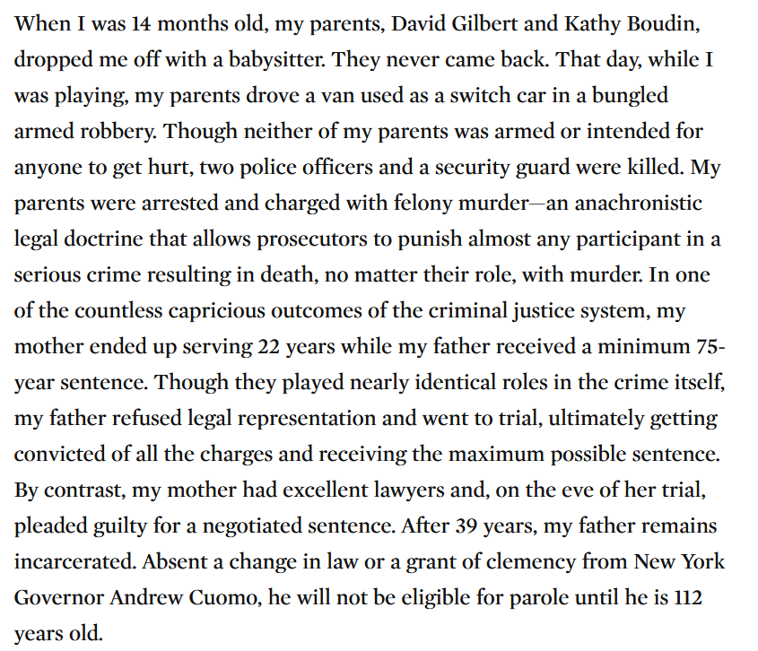 You're not thinking it through & how it's relevant. Read Chesa's own words -- he denies the ethical/moral implications of being an active participant in a willing act of potential gun violence -- a robbery where guns are used. https://www.thenation.com/article/society/chesa-boudin-parents-prison/ …pic.twitter.com/RdtvoZ821q
