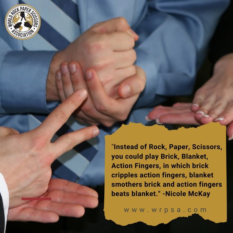"Instead of Rock, Paper, Scissors, you could play Brick, Blanket, Action Fingers, in which brick cripples action fingers, blanket smothers brick and action fingers beats blanket." -Nicole McKay