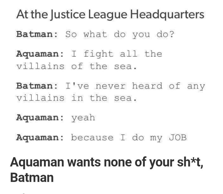 Nothing even happens in the ocean. He isn’t protecting anything but the fish. There are like 50 villains on the daily in Gotham.