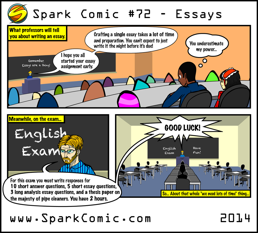 The irony is when the teacher claims you are incapable of writing an essay in 12 hours, but then expects you to write one in 2 hours. It's not hard to see.