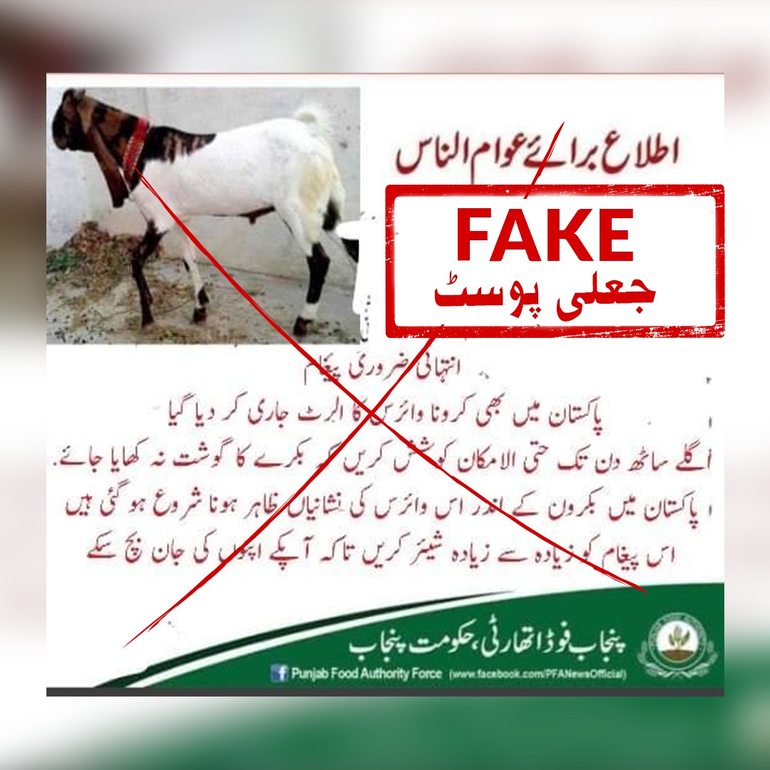 بکرے کے گوشت اور کرونا وائرس کے حوالے سے بنائی گئی یہ پوسٹ جھوٹی ہے۔
