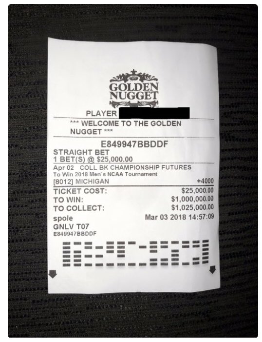 @DerekJStevens $1M richer. If@umichbball beats@NovaMBB in the#FinalFour2018 match up - his $25K bet at my@GoldenNuggetLV is a $1M winner!#whatwasithinking#GoNovapic.twitter.com/43oIqIjBZ6