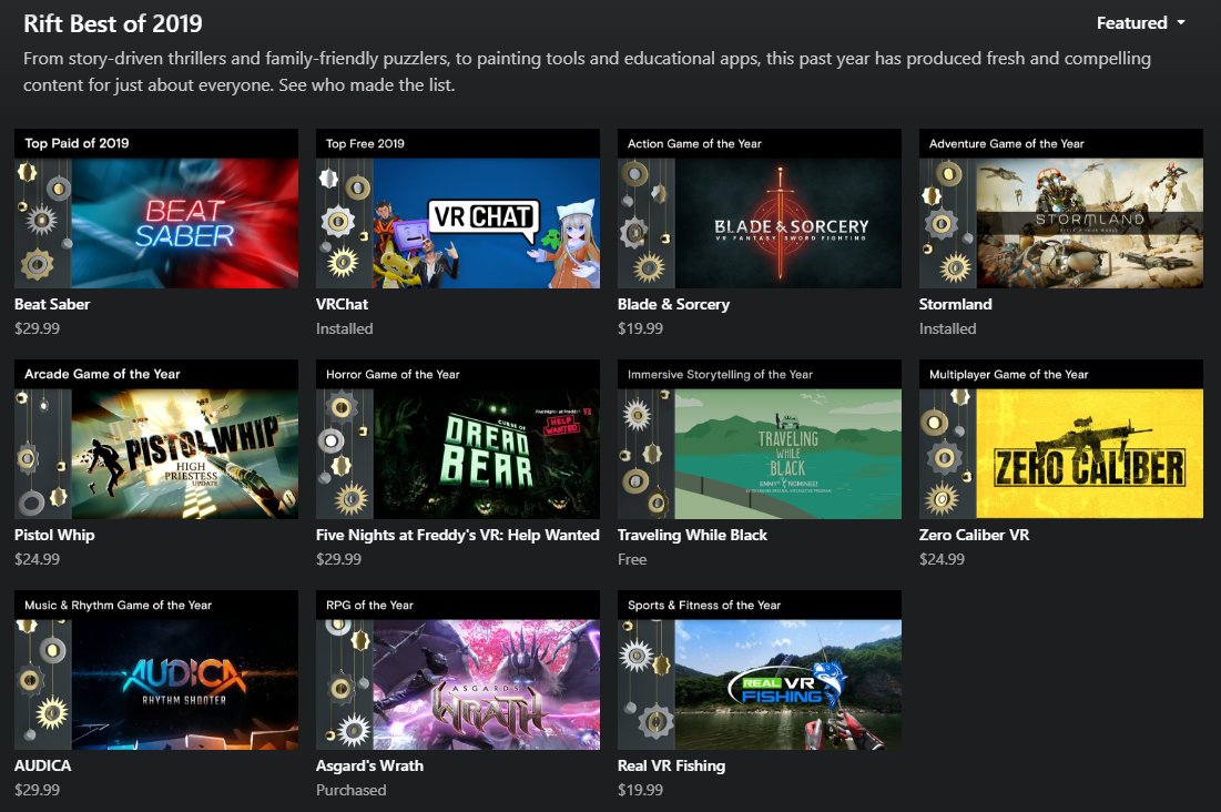 @oculus Looks like we are Top Free in their Best of 2019 list. Thank you to all the lovely folks at Oculus and our awesome@vrchat community <3pic.twitter.com/A0lRAmpmtk