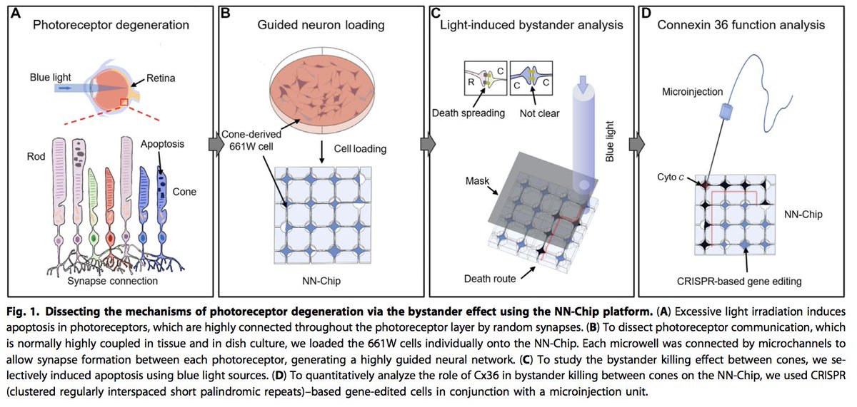 Using a novel microwell technique for controlling synapse formation, researchers demonstrate the bystander effect, where apoptosis of photoreceptors due to light stimulation spreads to neurons connected to them (h/t @drethelin) http://advances.sciencemag.org/content/advances/4/5/eaas9274.full.pdf …pic.twitter.com/c9jOdEnifa